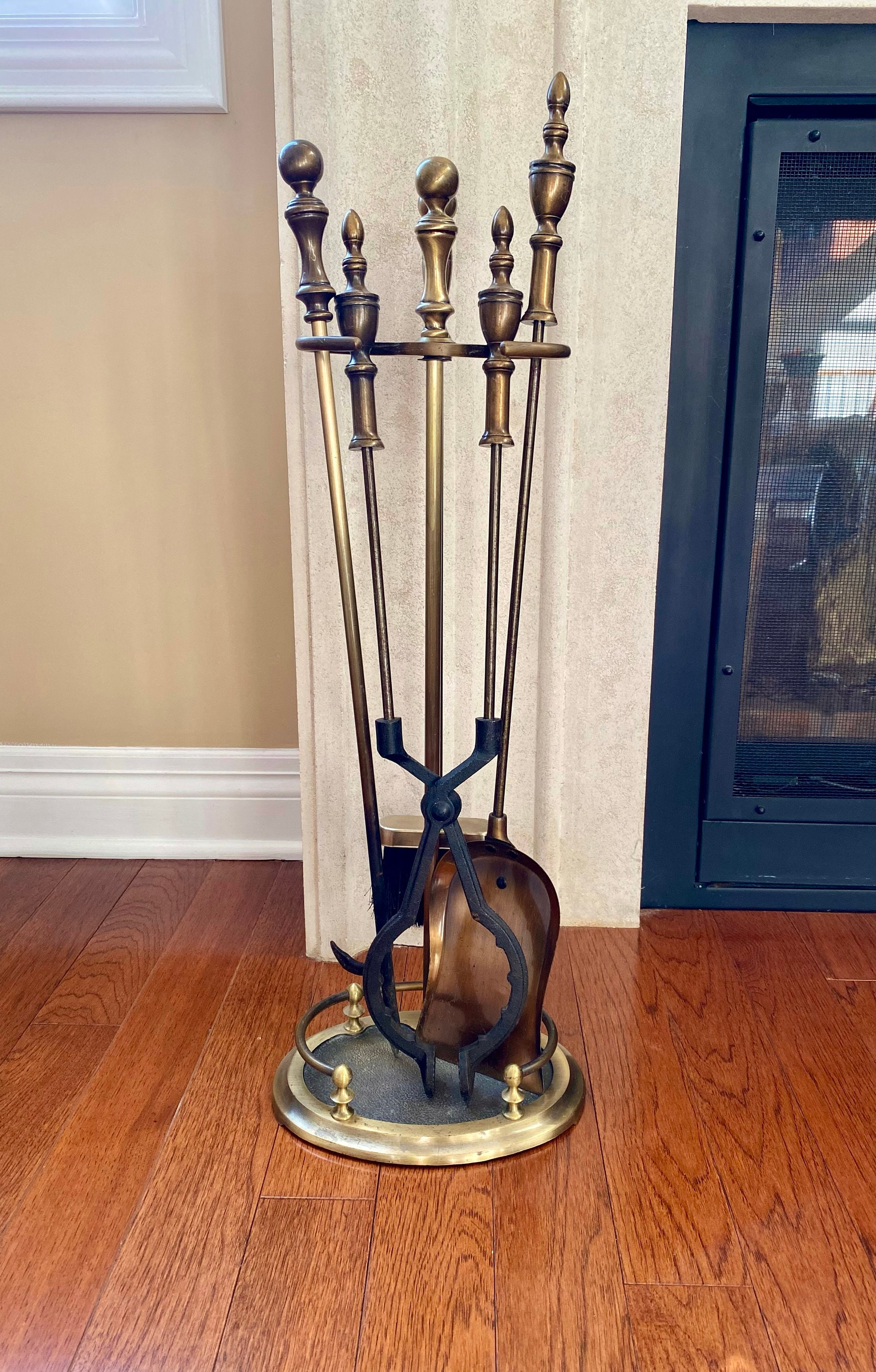 Virginia Metalcrafters Style Modernist Fireplace Tools Four Teardrop Handled Tools Sit Nicely On Br